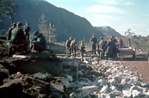 Etter å ha jobbet en tid på jernbanelinja i Saltfjellet, ble jeg sendt til i en transportgruppe i Mo i Rana. Her fikk jeg som oppgave å holde brakka rein, samt sørge for å fyre opp i ovnene ved firetiden hver morgen. Det var forferdelig kaldt denne vinteren, og vi hadde dårlige klær, og følgelig var det mange som fikk store frostskader. Selv var jeg så heldig at jeg kom over noen papirsekker som jeg pakket rundt meg under klærne. Jeg tror at dette hindret meg i få frostskader.