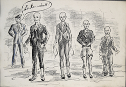 - Mine bange anelser når det gjaldt oss 61 på særlisten, ble dessverre bestyrket igjen. /.../ Enkelte ba om å få lov til å gjøre sitt fornødne, men fikk det sedvanlige gemyttlige svaret: "Scheisset in die Hosen", et uttrykk jeg ofte siden skulle få høre og også få føle de ubehagelige følgene av når jeg måtte følge anvisningen.36)