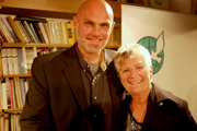 Tom Hatlestad fikk overrakt Blanche Majors Forsoningspris av Helga Arntzen, direktør i Aktive Fredsreiser på Litteraturhuset i Oslo